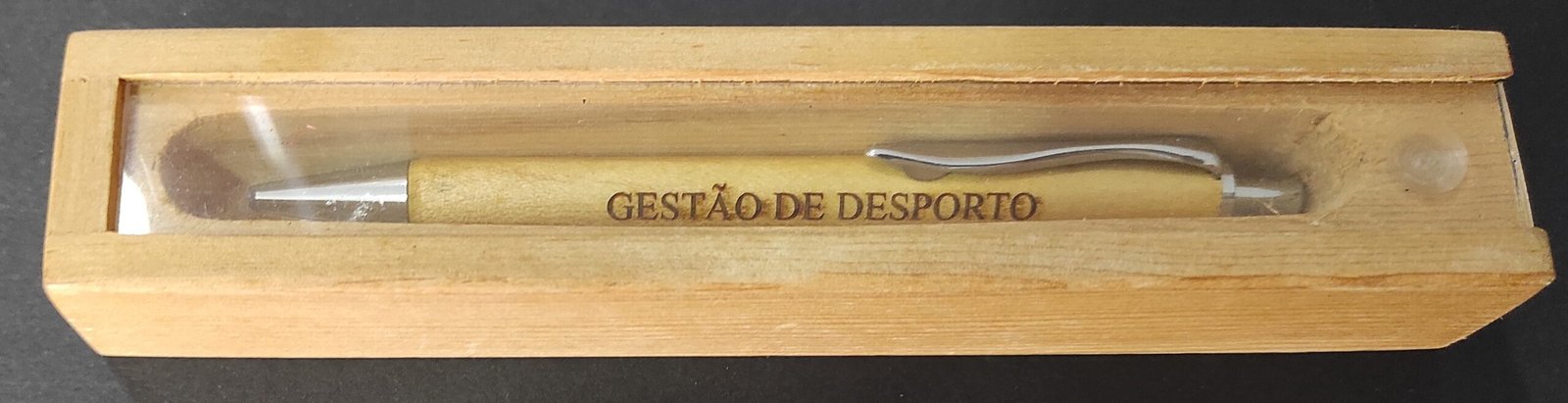 Esferográfica em madeira com caixa – gestão de desporto