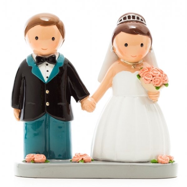 Custo de envio: 5€Figura em resina pintada á mão – Casal de noivos com base de flores rosa