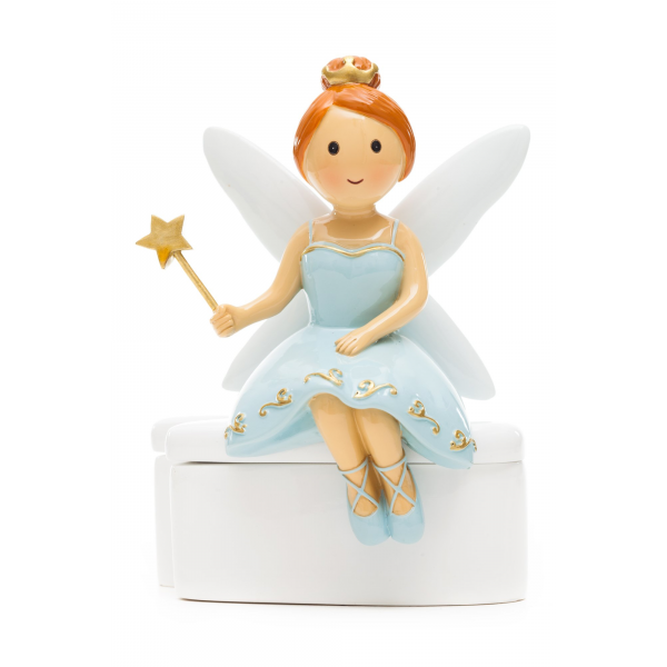 Figura em resina pintada á mão – Fada dos Dentes azul com caixa