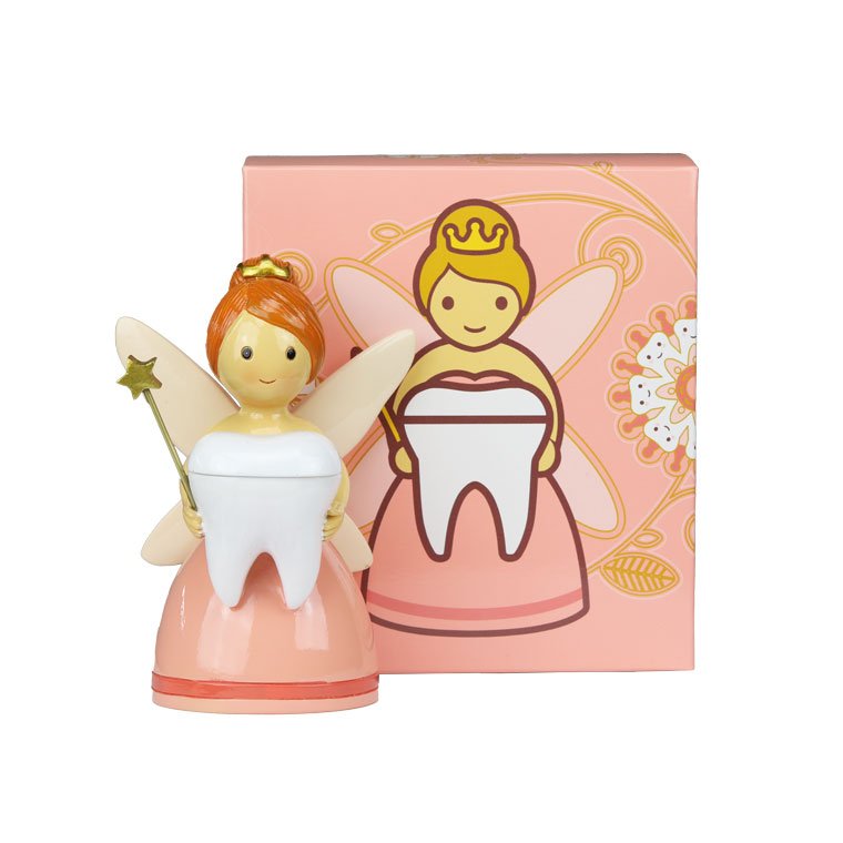 Figura em resina pintada á mão- Fada dos dentes menina com caixa para os dentes